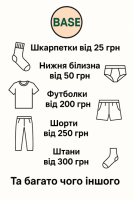 Ласкаво просимо до BASE – вашого унікального простору для стильних та якісних покупок! Ми створені для тих, хто цінує індивідуальність, комфорт і сучасний підхід до шопінгу. У BASE ви знайдете широкий асортимент одягу, який поєднує трендові дизайни з високою якістю та безліч інших товарів.Чому обирають BASE?