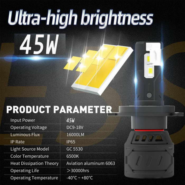Світлодіодні LED авто лампи H4 45w E5S HI/LOW далекий близький, Дніпро