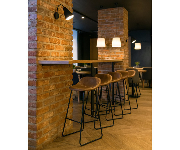 Барний стілець із м’яким сидінням поєднує комфорт та сучасний дизайн. Міцна металева основа з підніжкою у чорному кольорі , м’яке сидіння та спинка, оббиті екошкірою з наповненням із поролону, забезпечують максимальний комфорт та виглядає елегантно й стійко. Сучасний дизайн, що пасує до інтер’єру лофт або мінімалізм. Розмір стільця: ширина сидіння 41 см, глибина сидіння 49 см, висота від підлоги до сидіння 72 см, висота стільця 94 см. Кількість у коробці 2 од.