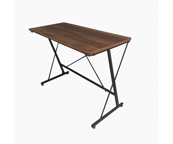Стіл комп'ютерний офісний, стільниця ДСП, меламінова плівка, окантовка, матеріал стійкий до подряпин, плям, водовідштовхуючий, легко миється, колір натуральний горіх, товщина стільниці 15 мм, металевий каркас чорного кольору 20*20*08 мм, порошкове фарбування, регульовані опори ніжок, розмір столу: ширина 100 см, глибина 48 см, висота 72 см.