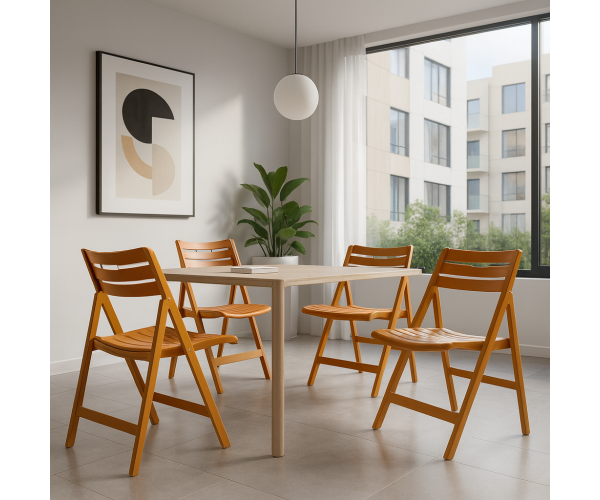 Стілець розкладний пластиковий, компактна конструкція, легкий у догляді, матеріал поліпропілен, розмір стільця: ширина 48 см, глибина 51 см, висота від підлоги до верху спинки 79 см. Застосування всередині приміщень та на вулиці. Цей розкладний пластиковий стілець є ідеальним поєднанням форми і функціональності. Його мінімалістичний дизайн ідеально підходить для тих, хто цінує сучасну естетику, а чіткі лінії роблять його універсальним вибором для будь-якого стилю інтер'єру. Кількість в упаковці: 2 шт. Вага стільця 3,5 кг. Витримує навантаження 100 кг