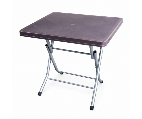 Стіл розкладний квадратний виготовлений з матеріалу поліпропілен, не боїться вологи та перепадів температур, також у матеріал стільниці додано добавки для захисту від ультрафіолетових променів та антистатичні добавки, основа зроблена з металлу і покрита порошковою фарбою, стіл підходить для зовнішнього використання, стіл можна скласти для комфортного зберігання і транспортування, догляд за столом за допомогою звичайних миючих засобів, протирати ганчіркою, розмір столу: ширина 80 см, глибина 80 см, висота 75 см. Вага 8 кг