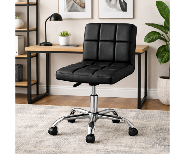 Крісло м'яке, зручне сидіння, матеріал екошкіра, регулюється по висоті, хромована фурнітура, без підлокітників, прогумовані колеса, піастровий механізм дозволяє регулювати крісло лише повисоті. Він являє собою блок з важелем керування газліфтом (підйомний механізм з газовою пружиною). Натисканням на важіль відкривається клапан у газліфті, в результаті чого рухається поршень і регулюється комфортна висота сидіння, розмір крісла: ширина крісла 45 см, глибина 38 см, висота спинки 34 см, висота від підлоги до верхнього краю спинки від 76 см до 86 см, висота від підлоги до сидіння від 42 см до 52 см. Кількість у коробці: 2 од.