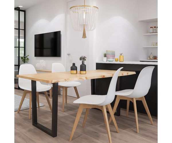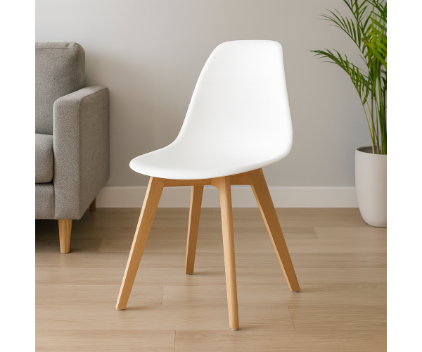 Стілець пластиковий, матеріал сидіння поліпропілен, ніжки дерев'яні, дерево бук, натуральний відтінок, розмір стільця: ширина сидіння 46 см, глибина сидіння 42 см, висота від підлоги до верху спинки 82 см, висота від підлоги до сидіння 45 см. Кількість в коробці: 4 шт.
