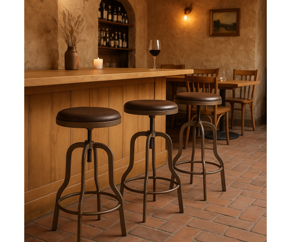 Високий барний стілець – стильне рішення для бару, кухні чи кав’ярні. Сидіння стільця виготовлене з м’якої штучної шкіри, що легко очищується, забезпечує комфорт, а додаткову надійність та сучасний вигляд надає металевий ободок по периметру сидіння. Міцна металева основа з підніжкою гарантує стійкість і витримує навантаження, завдяки гвинтовому механізму регулювання висоти, стілець можна підлаштувати під будь-яку поверхню. Цей барний стілець поєднує зручність, стиль і практичність, що робить його чудовим вибором для сучасного інтер’єру. Розмір стільця: діаметр сидіння 31 см, висота посадка стільця регулюється 68 до 88 см. Кількість у коробці: 2 од.