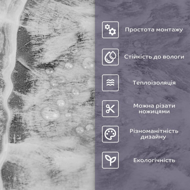 - 1. Легкость и прочность: плитка легкая и прочная, что упрощает ее логистику, установку и обеспечивает долгий срок службы. Материал легкий в установке, можно резать ножницами или монтажным ножом, не требует дополнительных материалов или специалистов. Между полосами не расходится, не раздувается и не деформируется. Процент обрези составляет 1%, что является лучшим показателем для настенных покрытий;
