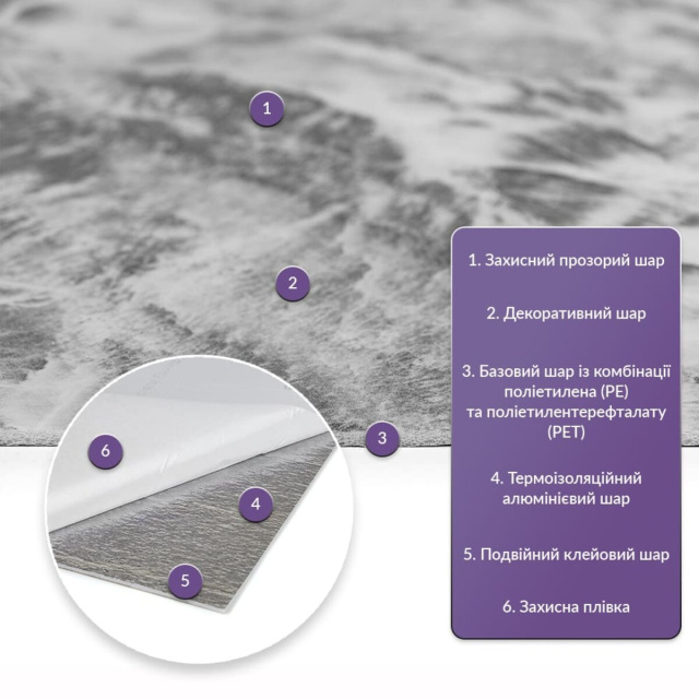 Как и в натуральных материалах, рисунки РЕТ плиток могут немного отличаться между собой, сохраняя при этом общий дизайн и цвет, что еще больше подчеркивает естественную имитацию. Также просим принять во внимание, что производитель имеет право изменять внешний вид товара, в частности, оттенок и рисунок, по своему усмотрению и без предварительного уведомления.Слои материала:
