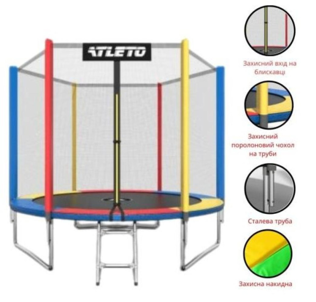 Батут Atleto 252 см з сіткою та драбинкою multikolor + подарунок м'ячик, Дніпро