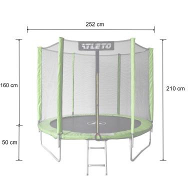 Батут дитячий з сіткою та драбинкою 252 см Atleto зелений + подарунок м'ячик, Дніпро