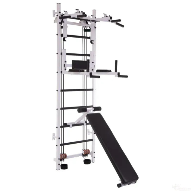 - шведська стінка (металеві перекладини з пластиковим покриттям) із системою еспандерів для максимально точного підбору навантаження;
