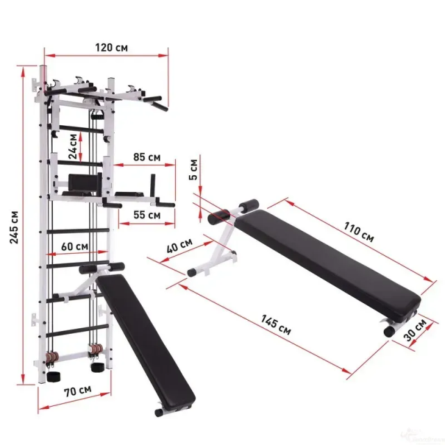 - Висота шведської стінки: 2,34 м;