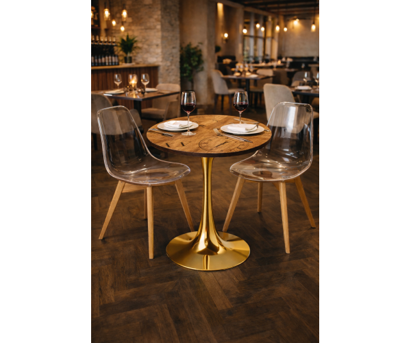 Сучасний, стильний та практичний обідній стіл від Група СДМ – ідеальне рішення для кафе, барів, ресторанів та домашнього використання. Стільниця для столу кругла, діаметр 60 см, товщина стільниці 25 мм, кромка pvc, vintage стиль, колір коричневий. Стійка металева опора забезпечує надійність та довговічність. Стільниця двостороння, малюнок на 2 сторонах! Стільниця універсальна і не має отворів під дану опору, для установки необхідно намітити місця для кріплення і прикрутити опору фурнітурою, що йде в комплекті! Застосування усередині приміщень. Круглий стіл від Група СДМ – це надійність, стиль та комфорт у кожній деталі. Замовляйте зараз і створіть зручне місце для відпочинку або бізнесу! Розмір д. 60 см, опора металева золотого кольору, діаметр внизу 50 см, квадратне кріплення 29 см на 29 см вгорі, загальна висота столу 75 см.