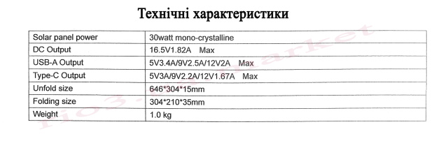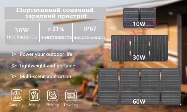 - Складана сонячна панель 30 Вт.