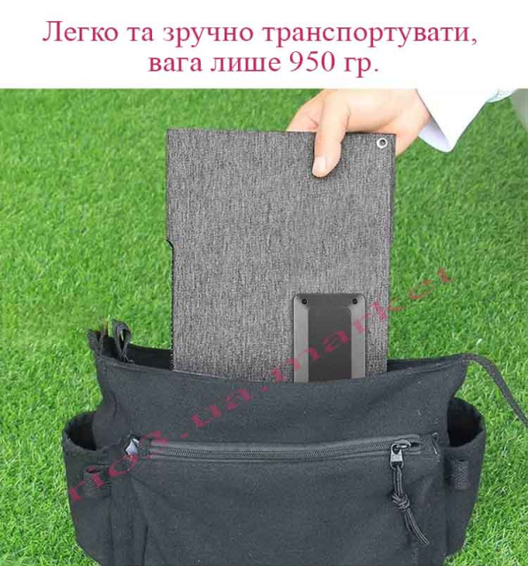 - Ультракомпактний дизайн: Панель складається з декількох секцій і легко згортається до розмірів невеликої папки. Вона займає мінімум місця в рюкзаку та має невелику вагу.